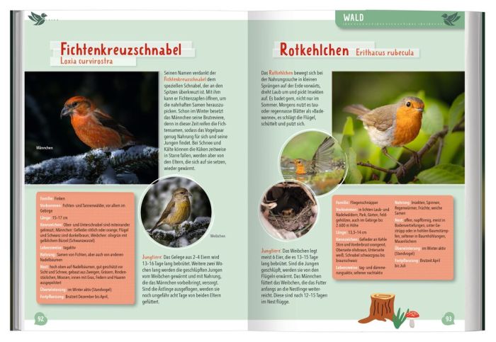 Gartenbaumläufer oder Singdrossel? Schafgarbe oder Gefleckter Schierling? Dank der Fotos in diesem kindgerechten Naturführer gelingt die Zuordnung garantiert. Gegliedert nach Lebensräumen finden hier über 200 der wichtigsten heimischen Tier- und Pflanzenarten Platz. Einleitend werden darüber hinaus Lebensräume, Lebensbedingungen, Lebenskreisläufe, Symbiosen und Tierklassen anschaulich und spannend erklärt. Bebildert mit tollen Fotos und schönen Illustrationen können neugierige Kinder hier sowohl in Fließtexten als auch in übersichtlichen Steckbriefen die vielen Säugetiere, Vögel, Bäume und Blumen kennenlernen. Mit all dem Fachwissen macht der nächste Ausflug in den Wald gleich noch mehr Spaß!