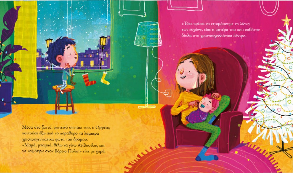 Ο Ορφέας θέλει να γίνει Αϊ-Βασίλης και να πάει ο ίδιος στον Βόρειο Πόλο. Μαζί με τους γονείς του, φτιάχνει μια ξεχωριστή λίστα, τη λίστα ευχών του Αϊ-Βασίλη! Καλοσύνη. Χαρά. Παιχνίδι. Βοήθεια. Τραγούδι.
