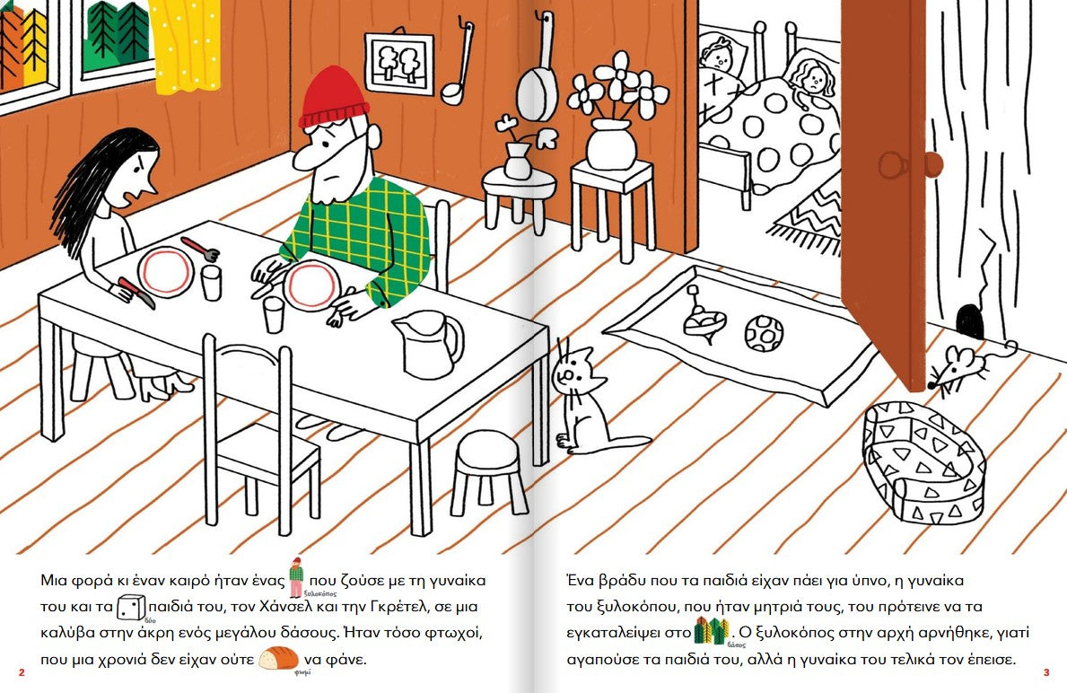Grimms Märchen in einem activity book auf Griechisch - lesen mit Piktogrammen, malen, stickern