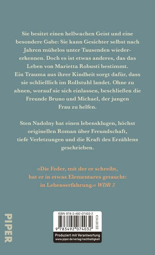 Sten Nadolny, geboren 1942 in Zehdenick an der Havel, lebt in Berlin. Für sein Werk wurde er unter anderen mit dem Ingeborg-Bachmann-Preis 1980, dem Hans-Fallada-Preis 1985, dem Premio Vallombrosa 1986, dem Ernst-Hoferichter-Preis 1995 und dem Weilheimer Literaturpreis 2010 ausgezeichnet. Nach seinem literarischen Debüt „Netzkarte“ erschien 1983 der Roman „Die Entdeckung der Langsamkeit“, der in alle Weltsprachen übersetzt wurde, und inzwischen zum modernen Klassiker der deutschsprachigen Literatur geworden ist. Danach veröffentlichte Sten Nadolny zahlreiche Romane, unter anderem „Ein Gott der Frechheit“, „Er oder ich“ und „Das Glück des Zauberers“. Für seinen Familienroman „Weitlings Sommerfrische“ bekam er 2012 den Buchpreis der Stiftung Ravensburger Verlag.